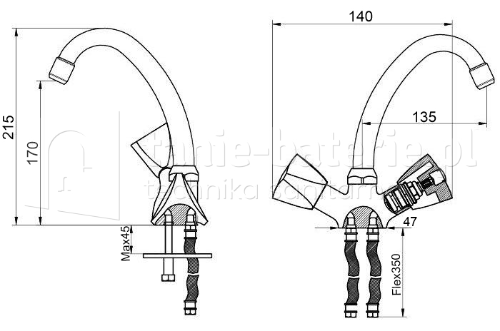 Bateria zlewozmywakowa stoj膮ca EXCLUSIVE posiada wygodne tr贸jk膮tne pokr臋t艂a, dzi臋ki czemu b臋dzie ciekawym elementem wystroju kuchni.